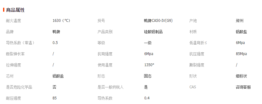 耐 火 度: ≥ 1630度