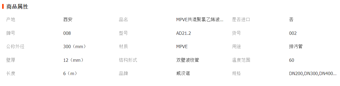 廠(chǎng)家供應(yīng)聚乙烯MPVE共混聚氯乙烯mpve雙壁波紋管排污排水 DN300