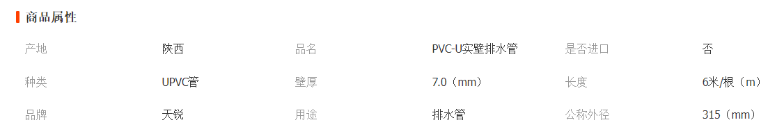 陜西天科塑料管道廠家 大口徑pvc-u實壁排水管 工程用排水管材315