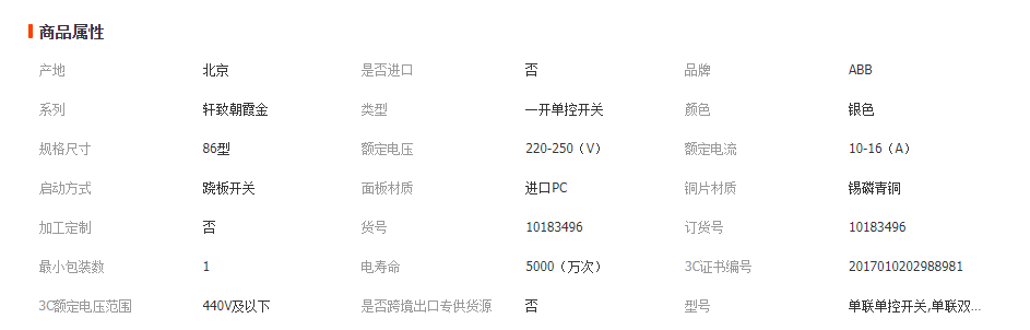 ABB 軒致系列 銀色 開(kāi)